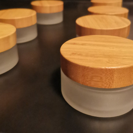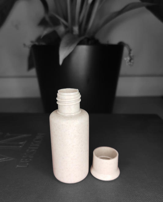 Bæredygtig flaske i matteret glas, bambuslåg og pumpe uden indhold